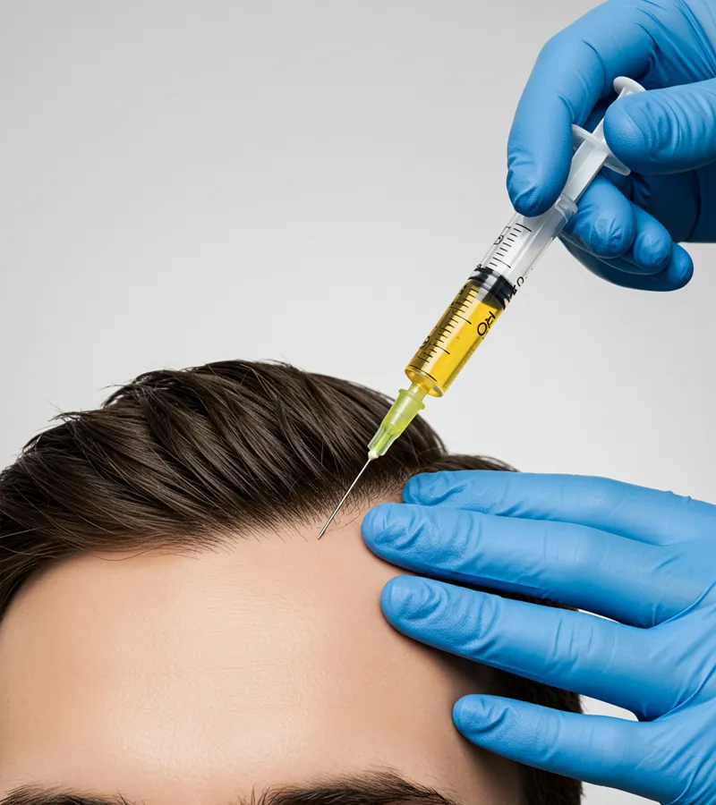 - Aplicación: Microinyecciones en el cuero cabelludo con factores de crecimiento
